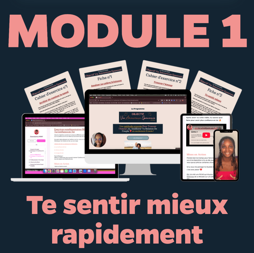 Il suffit de réussir à développer une sécurité intérieure stable et indestructible, pour passer en mode "réussite amoureuse". Et c'est exactement ce que je te montre à travers la méthode "Objectif Vie Amoureuse Epanouie".