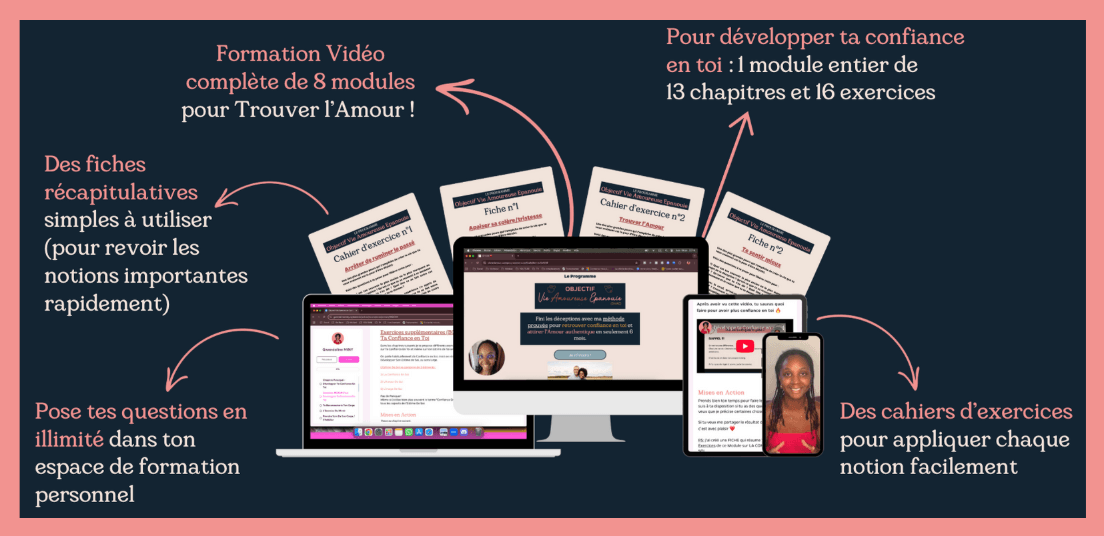 Formation vidĂ©o OBJECTIF VIE AMOUREUSE EPANOUIE : 8 modules, cahiers d'exercices et fiches rĂ©capitulatives (valeur 897âŹ)