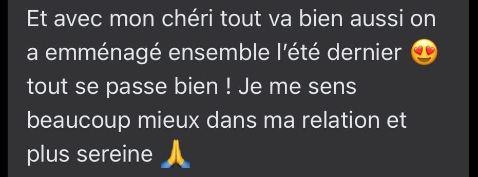 3 mois plus tard, j'ai rencontré l'homme qui est aujourd'hui mon mari et avec qui je suis depuis plus de 8 ans maintenant.