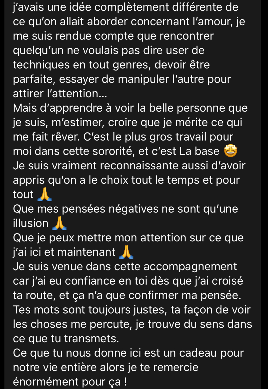 Je veux aider un maximum de femmes et jâaimerais te proposer un prix qui te permette d'investir sur toi pour avancer.