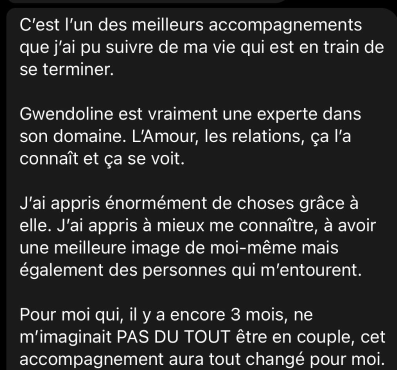 A ce jour, j'ai déjà guidé plus de 200 femmes à Reprendre Confiance en elles, Trouver l'Amour et avoir une belle Relation de Couple.
